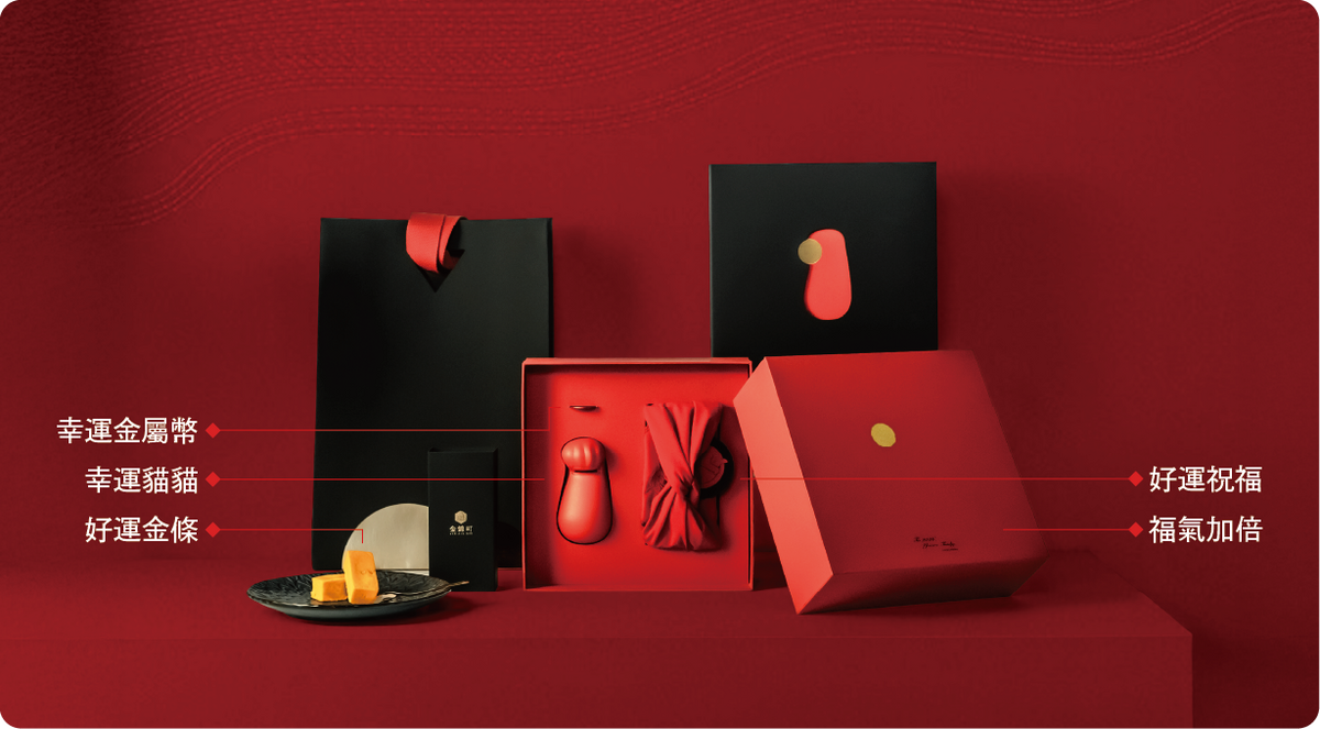 新春開工招財首選,結合來財 x 公益 x NFC 客製化祝福的春酒送禮首選,送上〖幸運紅貓〗與金錦町〖日曜土鳳梨酥〗為重要的人福氣加值,只要輕鬆一撥,隨著療癒的擺動,手握財運、福氣的紅貓,立即使命必達