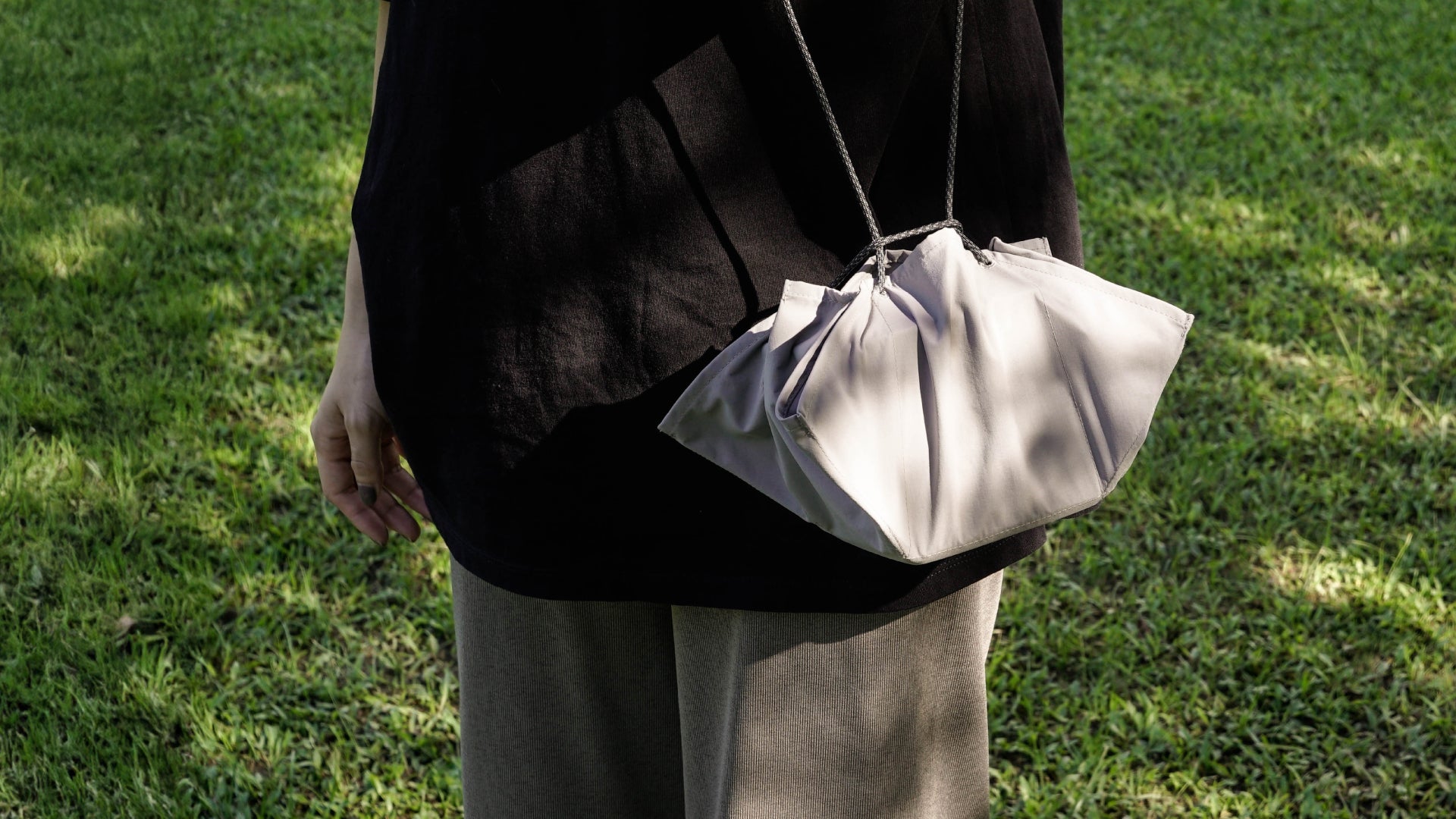 中央に置いてロープを引くだけ。長さを調整してそのまま持ち運べます。