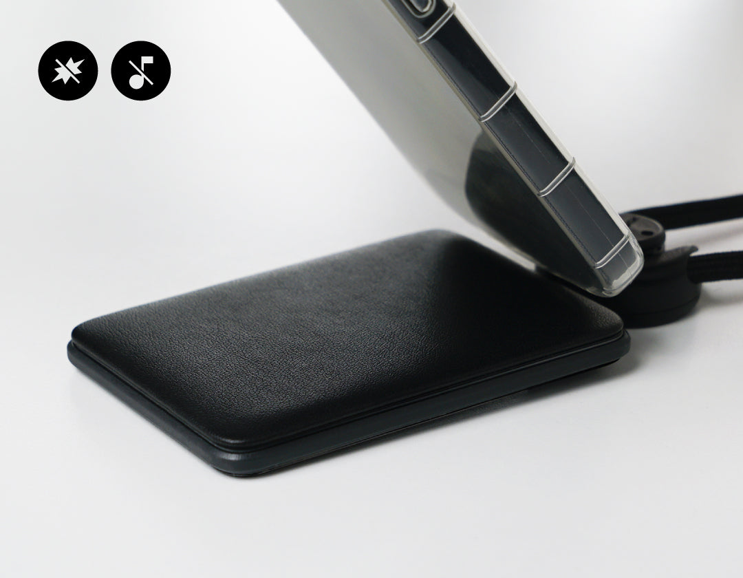 静音耐衝撃性レザーは柔らかい質感の素材であり、スマートフォンを傷から守り、煩わしい音を防ぎます。