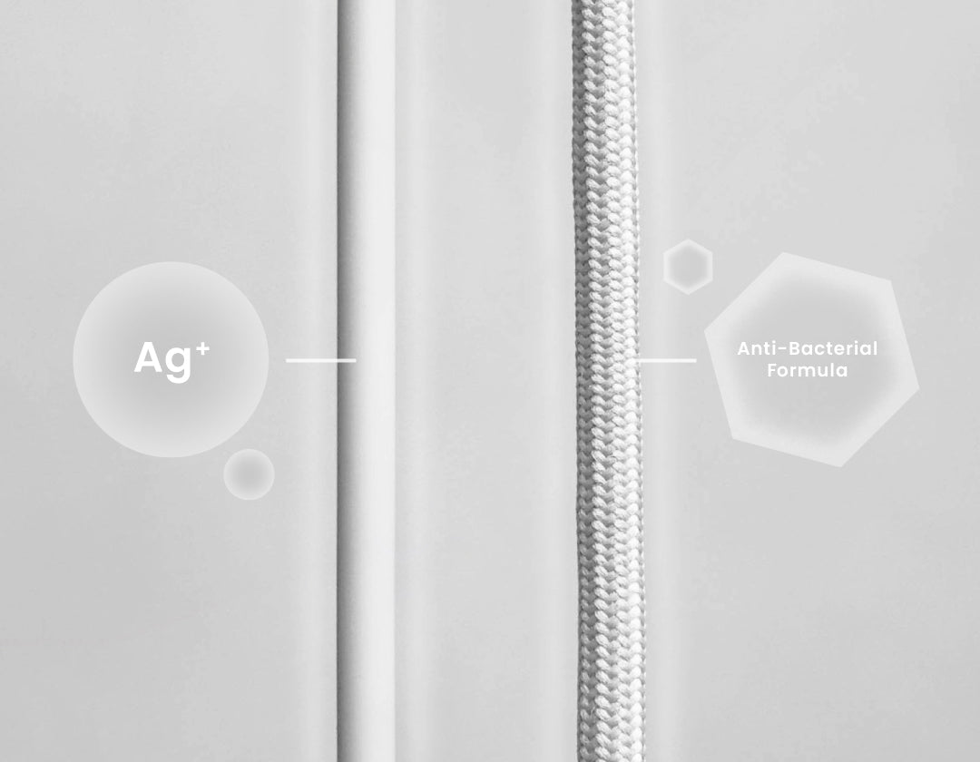 編織與矽膠材質皆添加抗菌配方,預防孳生細菌,雙重保護肌膚。