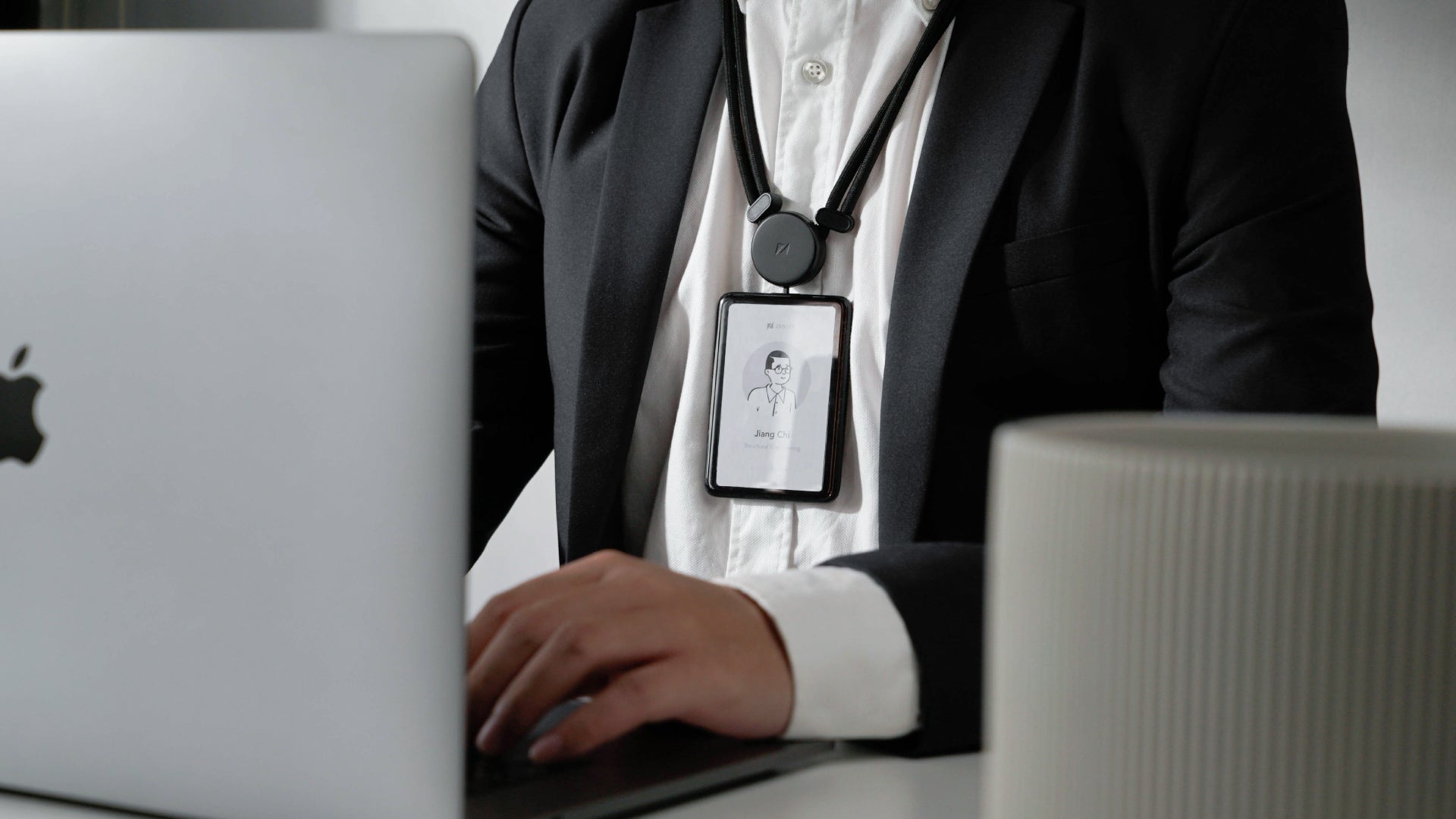 スマートフォンをバッジに装着するだけで、両手を自由に。