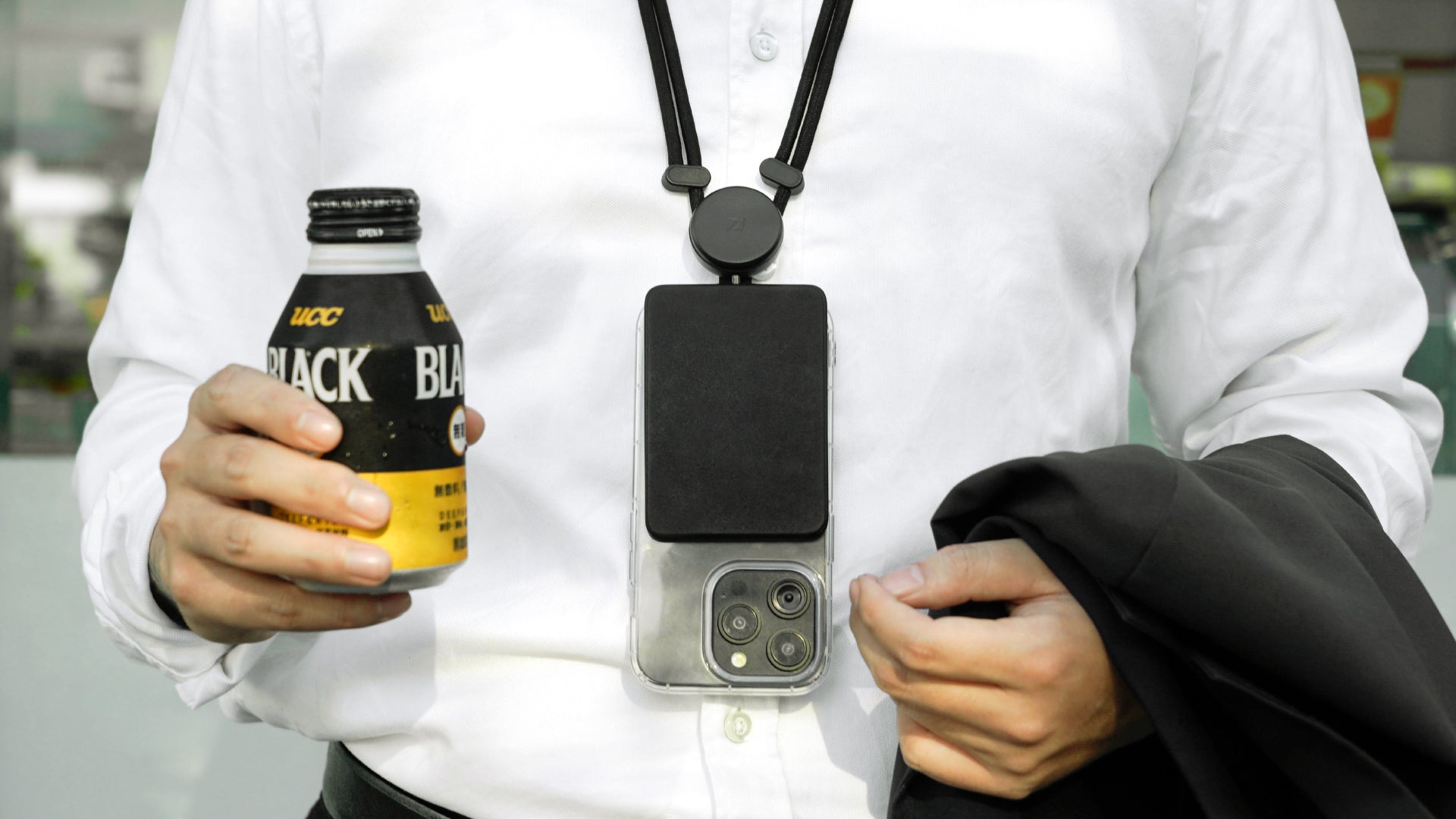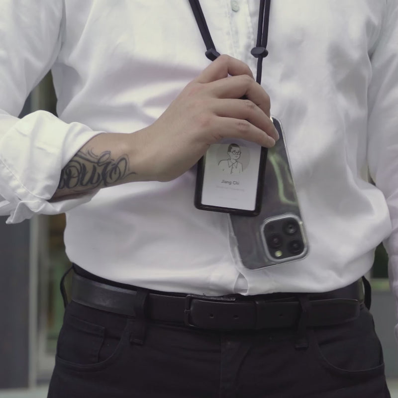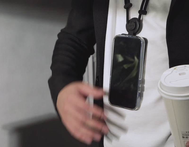 重いスマートフォンの重さによる不快感とはおさらばです。The Dualのストラップは、先端の専用設計のストラップを引くだけで簡単に長さを調節でき、首や肩への負担を瞬時に軽減します。