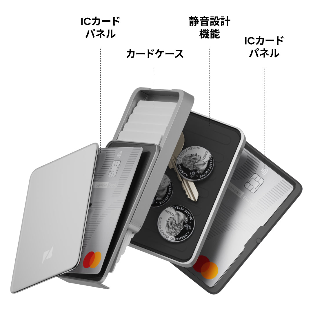 ※ 注意:本製品には磁石が使用されております。磁気ストライプカードの収納はお控えください。
