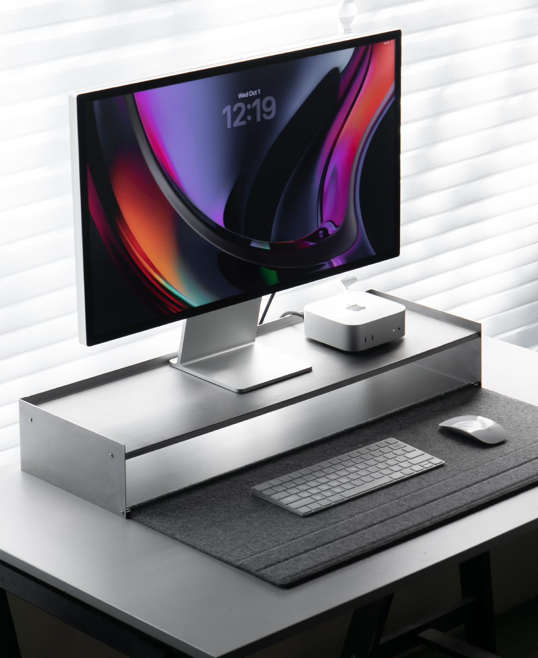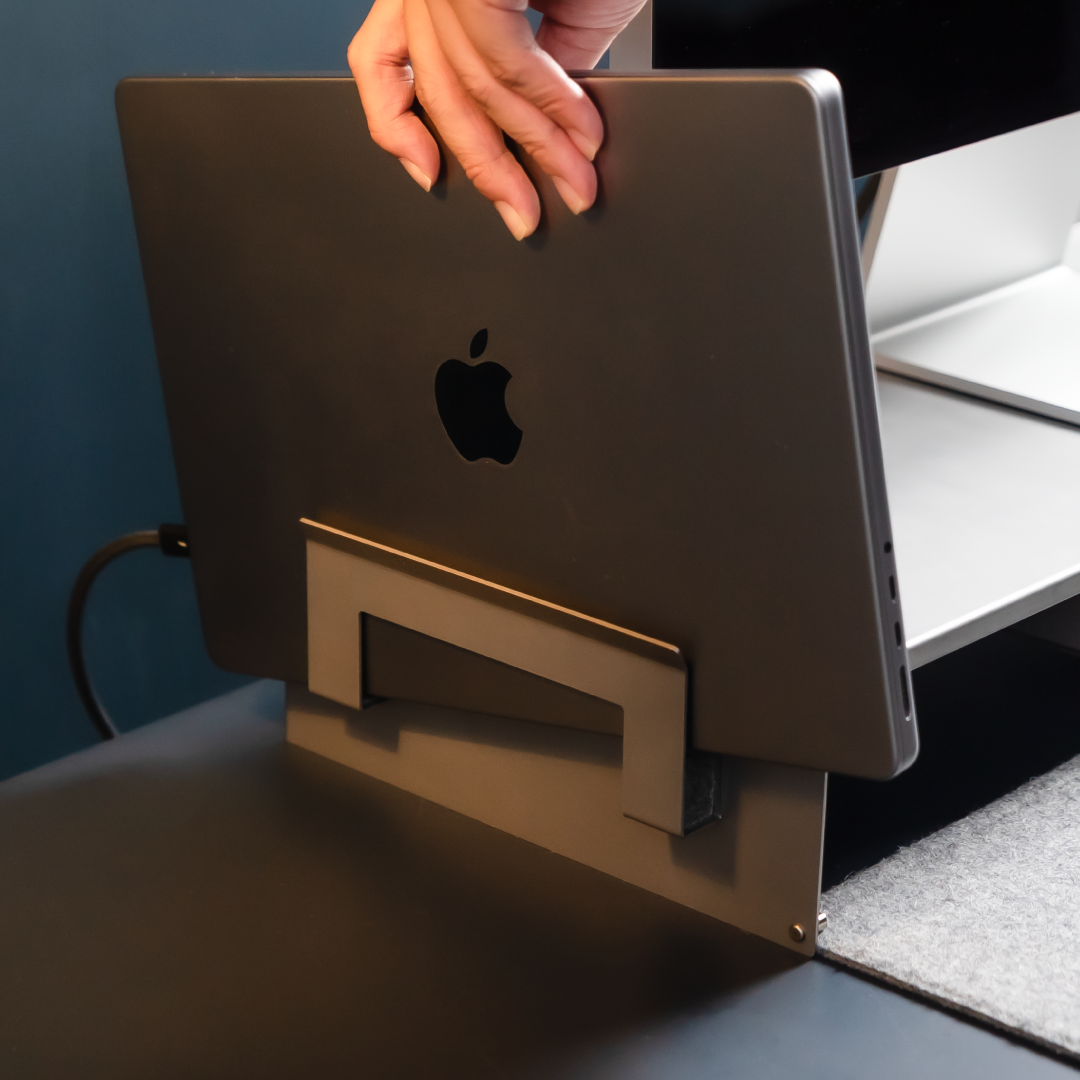 For external monitor users, this rack stabilizes your laptop while saving space. Made with stainless steel and felt lining, it offers protection and versatility, giving you the freedom to experiment with optimal desk layouts.