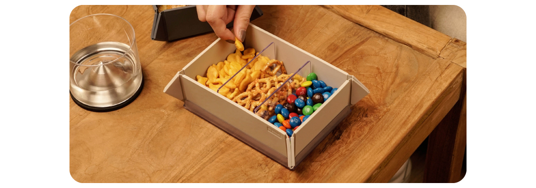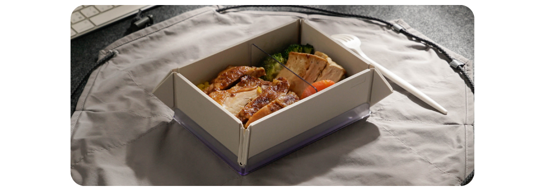 一秒成盒、好清洗、可微波,折折盒經典再進化,材質功能全面革新,搭配多樣專屬配件,餐桌好朋友升級便當神隊友。