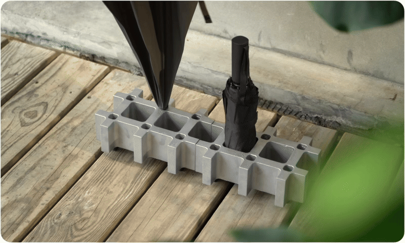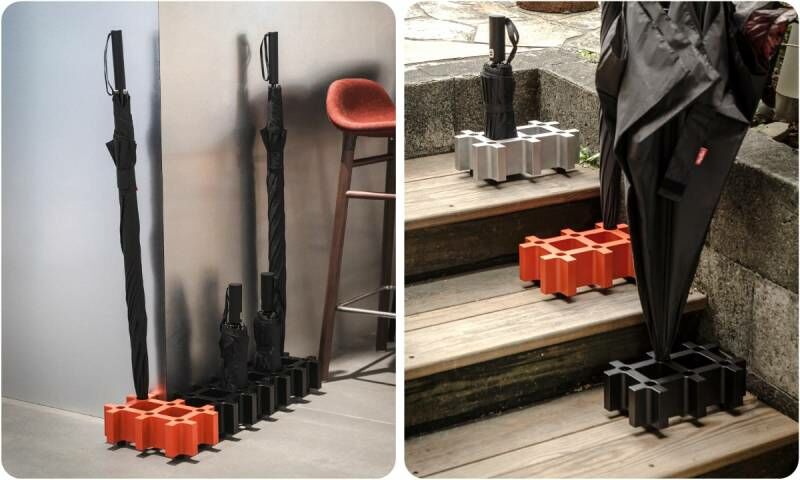 一個傘座就是一個單元,可以如樂高般任意組合,藉由不同的堆疊方式,自由組合出最符合空間樣態的形式與風格。