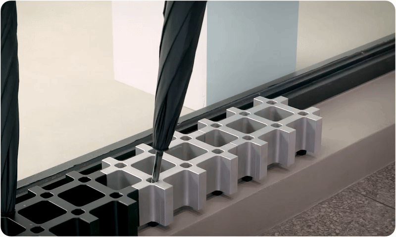 玄關必備的風格單品,我們以最小體積設計,翻轉雨天新氣象,晴天的極簡鋁合金雕塑,雨天立刻化身整齊俐落的模組化雨具收納系統,平面、堆疊、交錯自由組合,創作城市中極具現代美感的雨中風景。