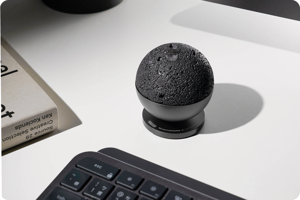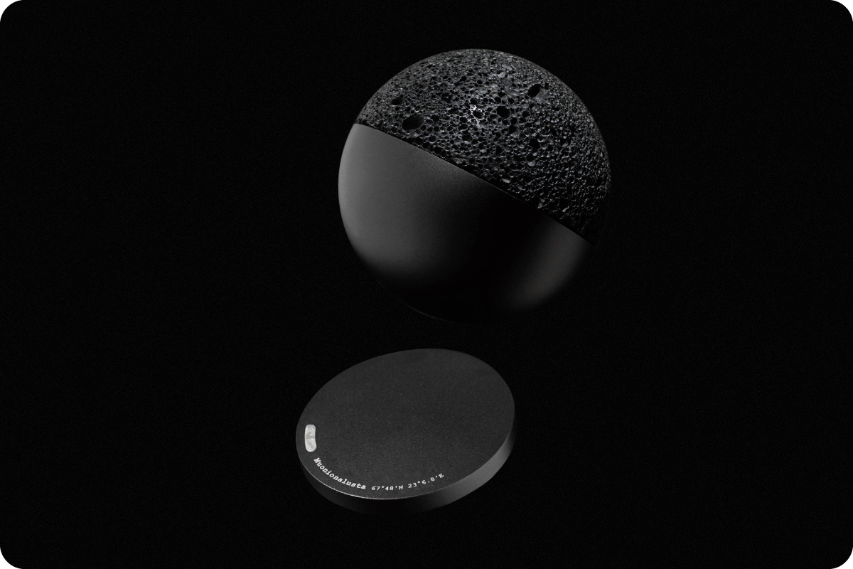 LAVA ball 隕石底座鑲嵌瑞典隕石,經過多道工法切割、酸蝕,讓獨特的韋德曼交角紋路得以呈現,並妥善進行防鏽與保護工序,讓表面紋路得以永遠停格在最完美的一刻。
