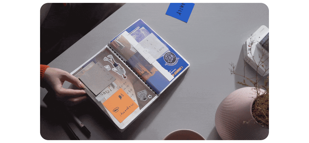 從圖案特殊的包裝紙、質感迥異的美術紙、甚至是異材質都能融入你的筆記中,