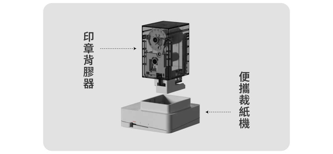 輕壓印章背膠器兩側並向上抽離,便利自造機即可一分為二,