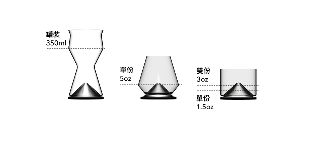 錐形杯底搭配寬口設計,在飲用時有別於傳統杯型,
