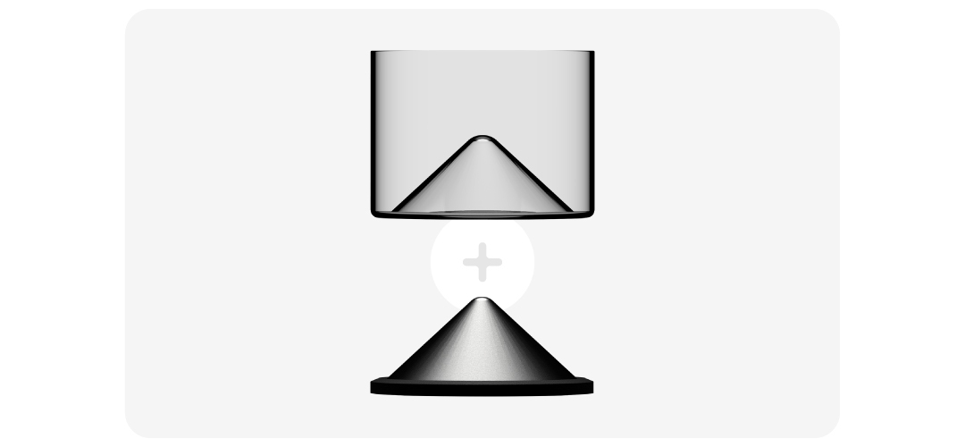 以手工吹製玻璃結合不鏽鋼保冰盤,有著典雅山峰造形的醒酒冰鎮杯。讓你簡易3步驟享用風味最純淨、香氣更飽滿,且每一口都沁涼的冰鎮美酒。