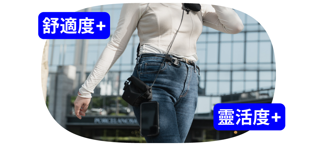 手機自然垂掛在順手位置,大幅降低肩頸壓力,適合長時間配戴不疲累,操作更直覺。