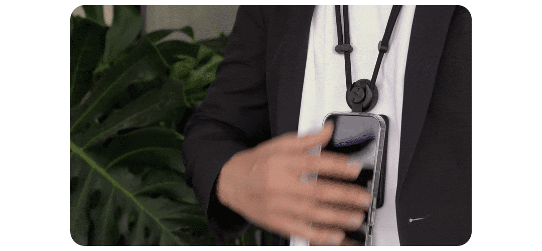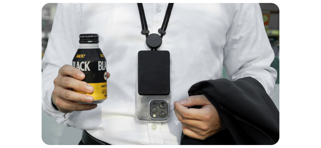 一繩俐落整合手機與證件,快扣一拍即合,立即解放雙手,工作、休閒快速切換,專為行動派而生的二刀流神器!