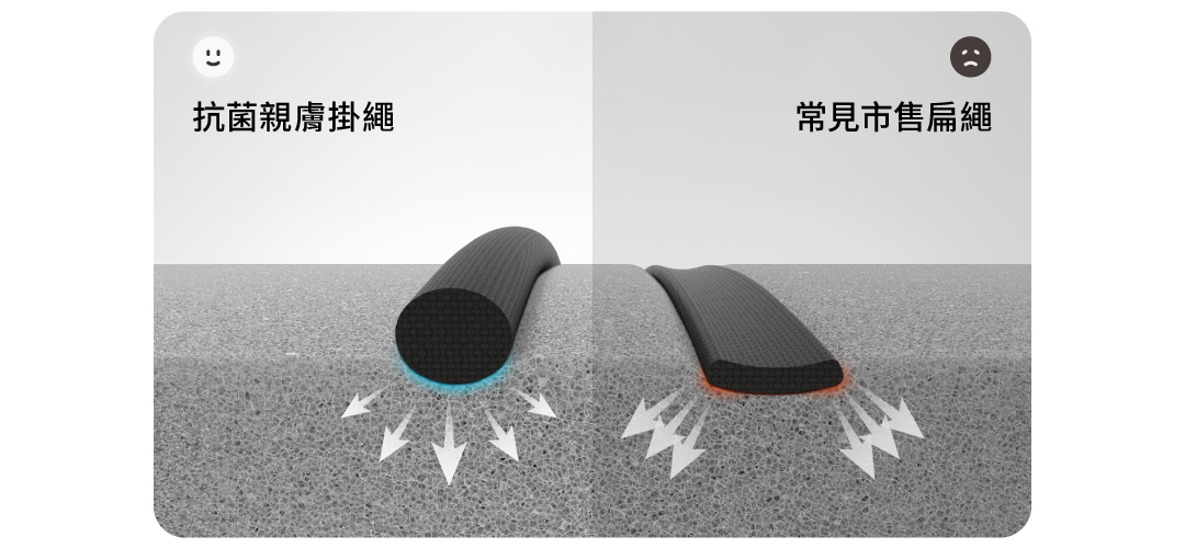 使用平滑的圓繩,能夠更均勻分散壓力,