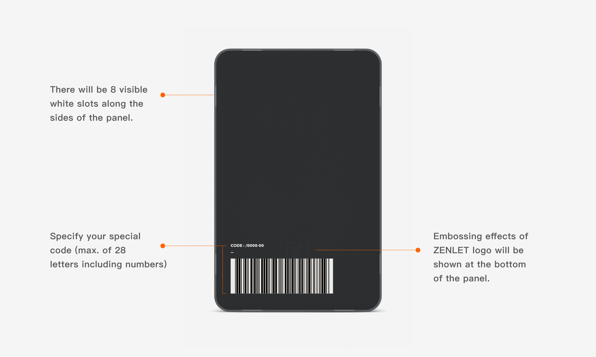 6. Embossing effects of ZENLET logo will be shown at the bottom of the panel.