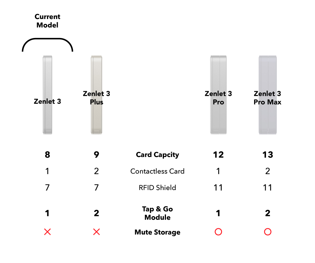 Zenlet 3 Series reduces the volume of traditional wallets by 60%.