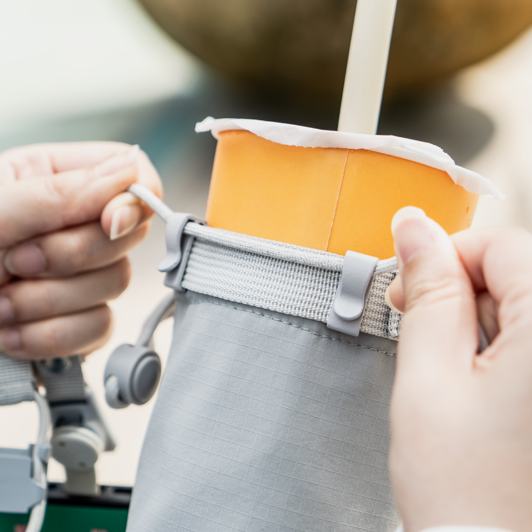 採用雙水平扣件固定設計,讓飲料或雨傘都能穩穩貼合、不晃動。無論是快步通勤、移動中拍照、還是擠進人潮,杯子都不會傾倒,更不會灑出。不只收得下,更收得穩,讓你安心拎著走、從容喝一口。